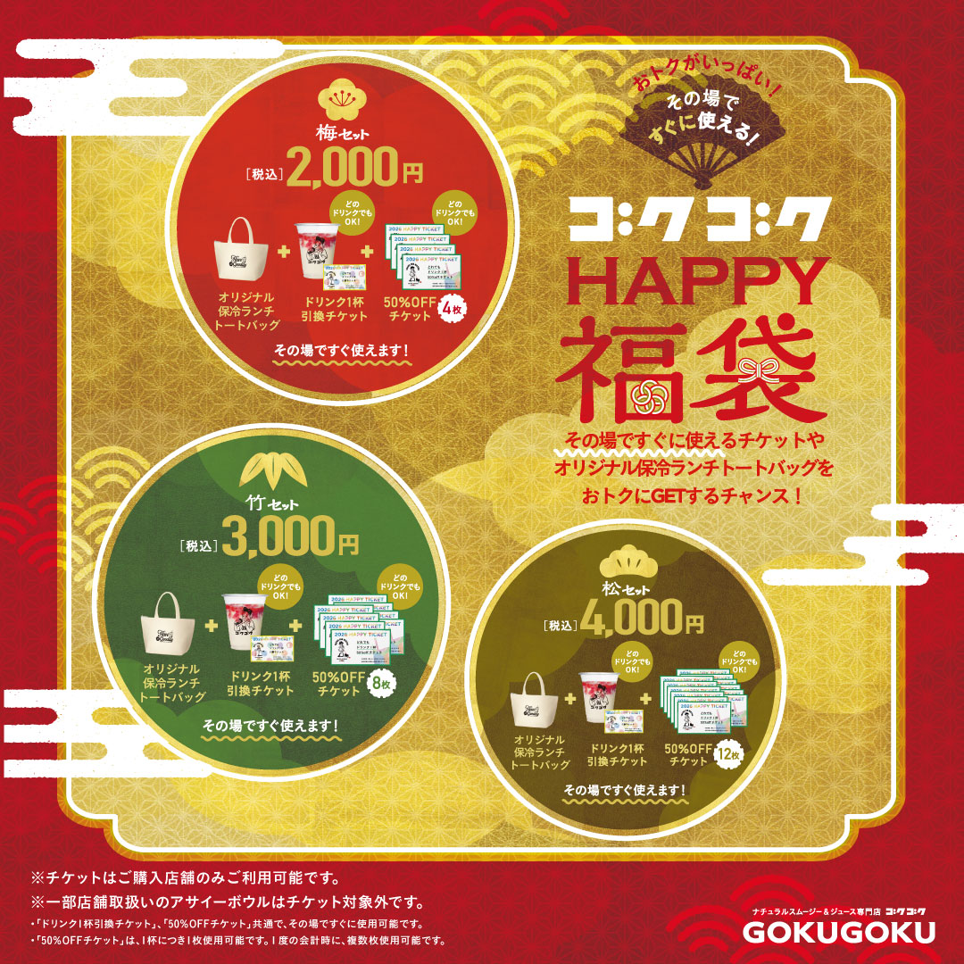 今年もゴクゴクから、2026年HAPPY福袋を販売いたします。